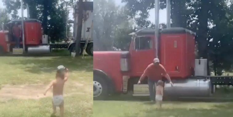 Nkuko aya mashusho abigaragaza, uyu mwana w’umuhungu yagiye yirukanka cyane maze asanganira Papa we amugwamo. Mu kugenda yiruka, uyu mwana w’umuhungu yajugunye hasi ingofero yari yambaye bigaragaza ko yari yitaye cyane ku kujya guhobera umubyeyi we.