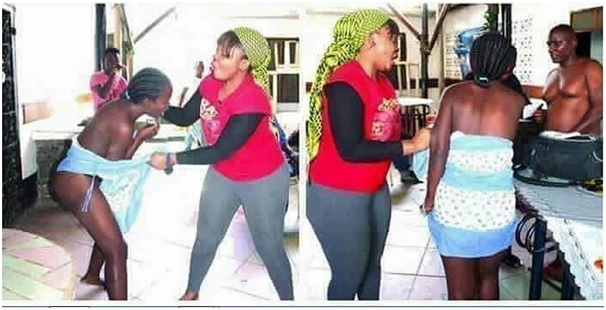 Ubwo uyu mugore yabafataga yahise atangira gukubita uyu mwana w’umukobwa ndetse anamwambika ubusa ari nako nyamukobwa atakamba mu marira menshi ngo ababarirwe iryanone.