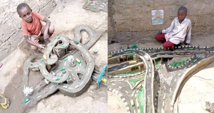 Umwana ukiri muto wo muri Nigeria yahinduriwe ubuzima nyuma yo gukora imihanda inyuranamo imeze nk’iyo mu mugi wa Kano mu Nigeria akoresheje icyondo.