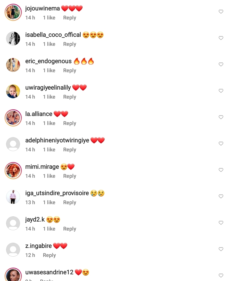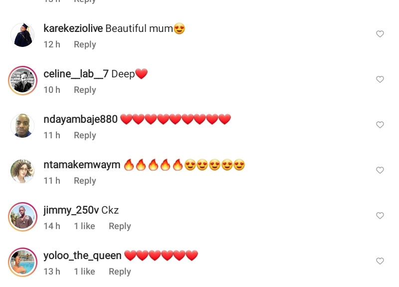 Iyi foto yatumye na none abafana be bamwereka ko bamwishimiye cyane  binyuze mu butumwa bashyiraga muri comment bwiganjemo imitima itukura, n’amagambo meza amubwira ko ari umubyeyi mwiza.