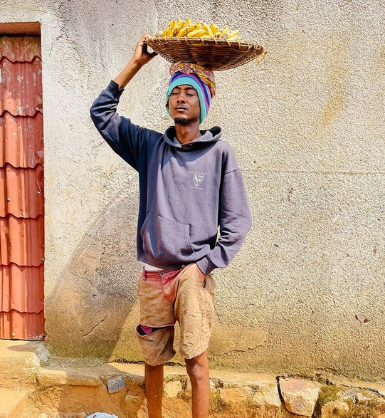 Umunyarwenya Clapton Kibonge abinyujije ku rukuta rwe rwa instagram yashyize hanze ifoto ye yikoreye agataro kariho imineke maze ayiherekesha amagambo agira ati Muzadukumbura.