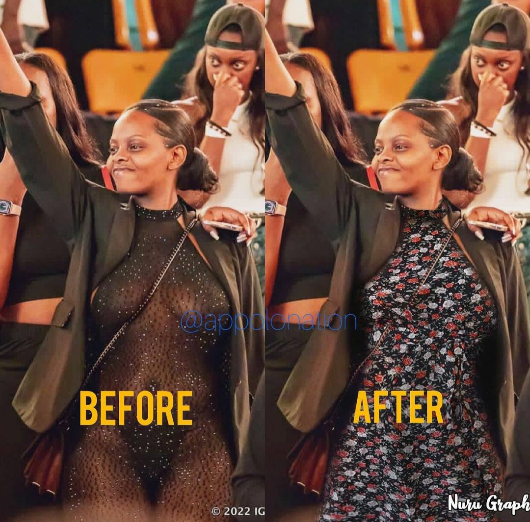 Nyuma yo gukwirakwira kw’iyo foto, umwe mubakora amafoto wiyita Naru yifuje gusangiza abanyarwanda ifoto ya Mugabekazi yamwambitse ikanzu itabonerana.