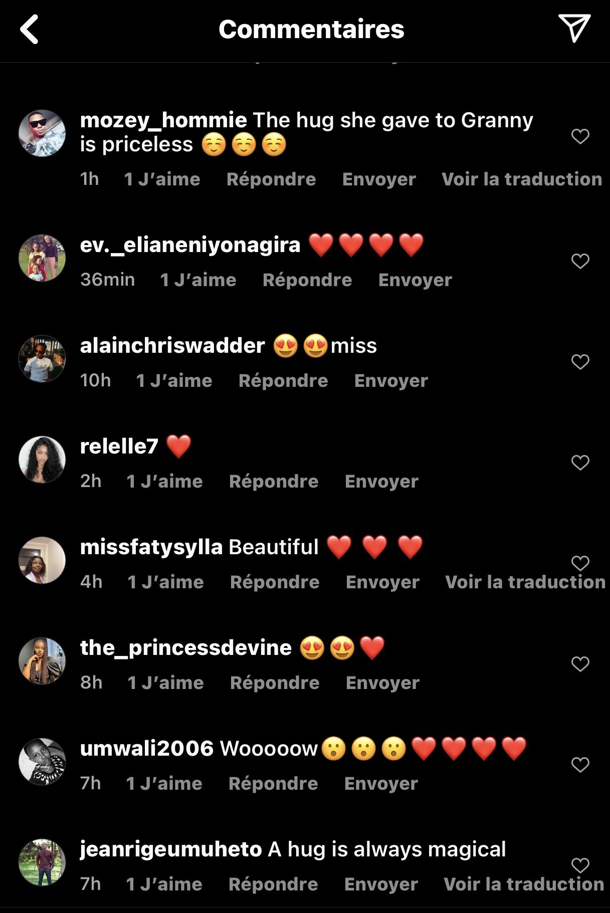 Abinyujije ku rukuta rwe rwa instagram, Miss Muheto yerekanye amwe mu mafoto y’uko byari bimeze harimo n’imwe aho agaragara yahuje urugwiro n’Umubyeyi barabyinana ndetse baranahoberana.