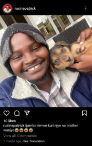 Rusine Patrick amaze gupositinga iyo foto yagize ati:”ijambo rimwe kuri njye n’umuvandimwe wanjye”,aho Rusine Patrick uwo yavugaga w’umuvandimwe we n’imbwa.Ibyo byakomeje gusetsa abantu ndetse bikomeza gushimangira ko Rusine ari umunyarwenga wa mbere mu Rwanda nkuko bikomeje kuvugwa.