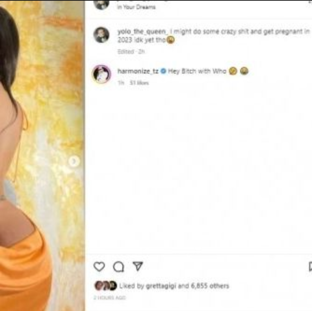 Yolo the Queen, Ubwo yasangizaga abamukurikira iyo foto igaragaza ikibuno cye nta n’akenda k’imbere yambaye, yafunguriye gusa Harmonize kugira ngo abe ariwe wenyinye uyitangaho igitekerezo cyane ko ibyo yanakoze yabigezeho.