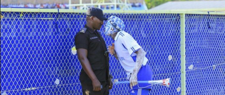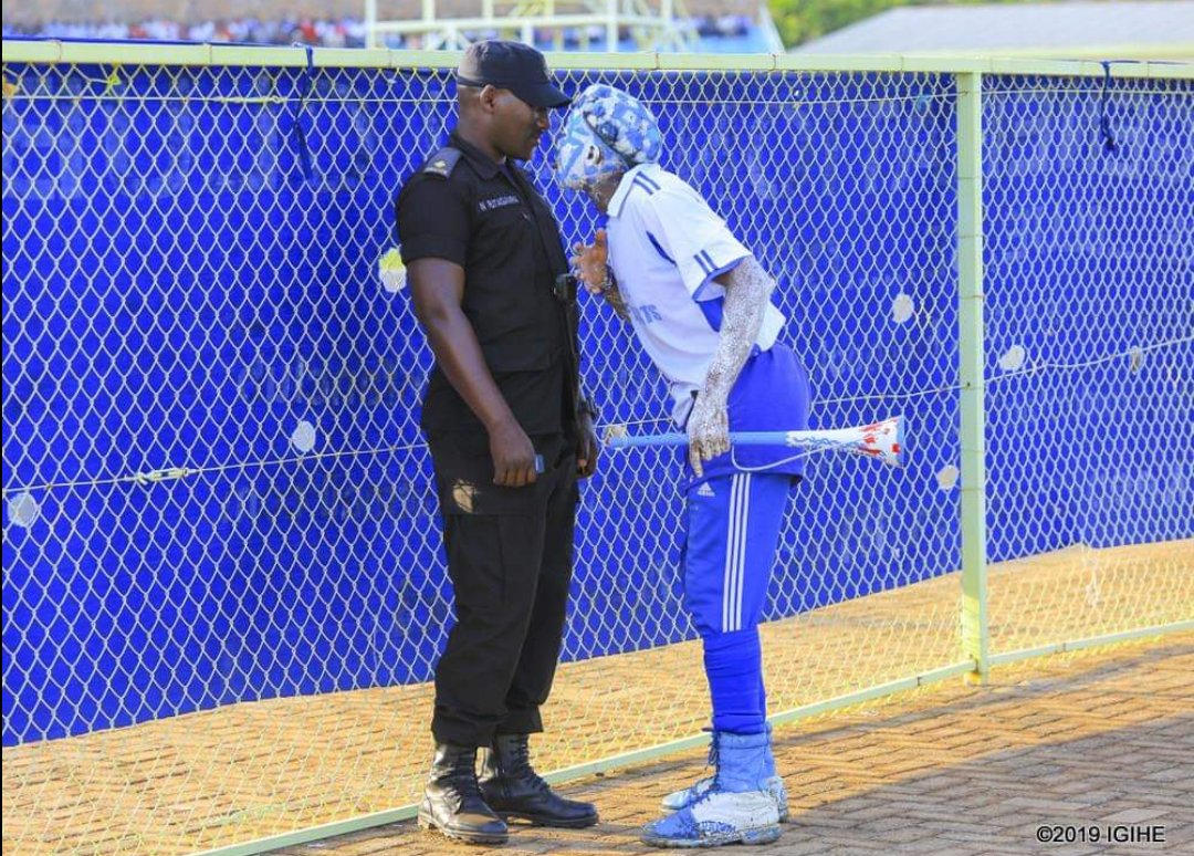 Ku mbuga nkoranyambaga zitandukanye hongeye kuzenguruka ifoto y’umufana wa Rayon Sports wegereye cyane umuporisi wari uri ku kibuga amureba mu maso yamwegereye cyane.