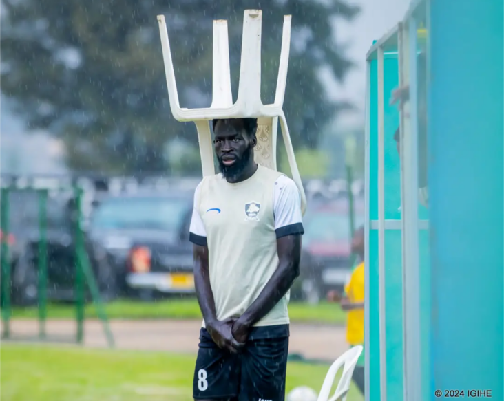 Kubera ko i Musanze, aho abakinnyi basimbura bicara ari hato, Shaiboub yahisemo kwitwikira intebe ubwo imvura yari nyinshi.