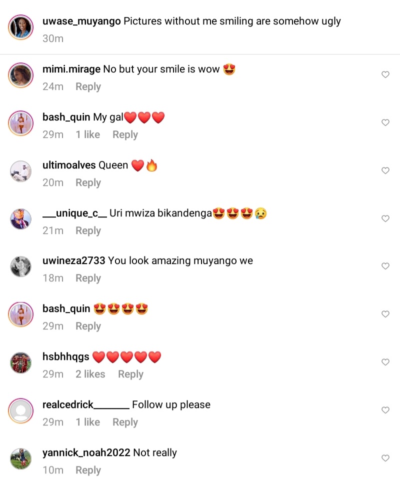 Miss Uwase Muyango Claudine wegukanye ikamba rya Nyimpinga uberwa n’amafoto(Miss Photogenic 2019) yerekanye uko aba ameze iyo atasetse.Miss Muyango ukunze kugaragara kenshi mu mafoto agaragaza inseko izira imbereka kandi yishimirwa n’abatari bake yashyize hanze ifoto yiyumanganyije adaseka ,maze ahishura ko kudaseka bishobora gutuma ataba mwiza.Abamukirikira bamubwiye ko kubera ubwiza bwe niyo adaseka ahora afite ubwiza.
