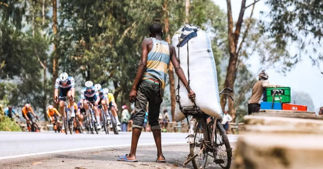 Umunyonzi byamusabye guparika igare yari atwaye ajyanye imyaka mu isoko, kugira ngo ahange ijisho abakinnyi b’amagare babigize umwuga bari guhatana mu gace ka Gatandatu, Rubavu – Gicumbi