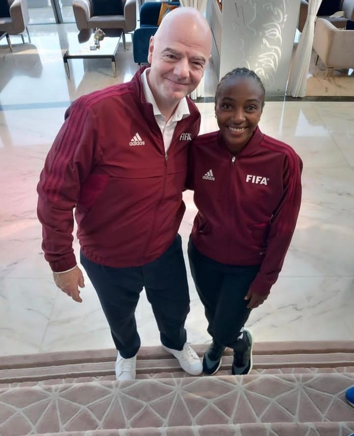 Ifoto y’umunsi: Reba ifoto ya Mukansanga Salima ari kumwe n’umuyobozi wa FIFA yakoze ku mitima y’abanyarwanda batari bake
