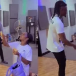 Umuhanzikazi ukunzwe cyane mu Rwanda no hanze yashinze amavi hasi aha mugenzi we w’umusore amafaranga (VIDEWO)