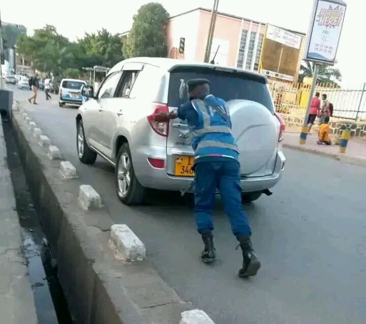 Mu gihugu cy’u Burundi haravugwa inkuru y’umupolisi wo mu muhanda wagaragaye yambaye impuzankano y’akazi ari gutanga umusada asunika imodoka y’umuntu utamenyekanye yari yagize ikibazo.