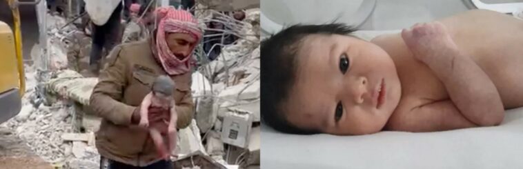 Umwana wo muri Syria wahawe izina rya ‘Aya’ cyangwa se ‘Igitangaza’, yarokotse umutingito wahitanye umubyeyi we wapfuye amaze kumubyara.