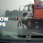 Umumotari yakoze ibidasanzwe ubwo ikamyo yari igiye kumuca hejuru mu mpanuka ikomeye (Video)