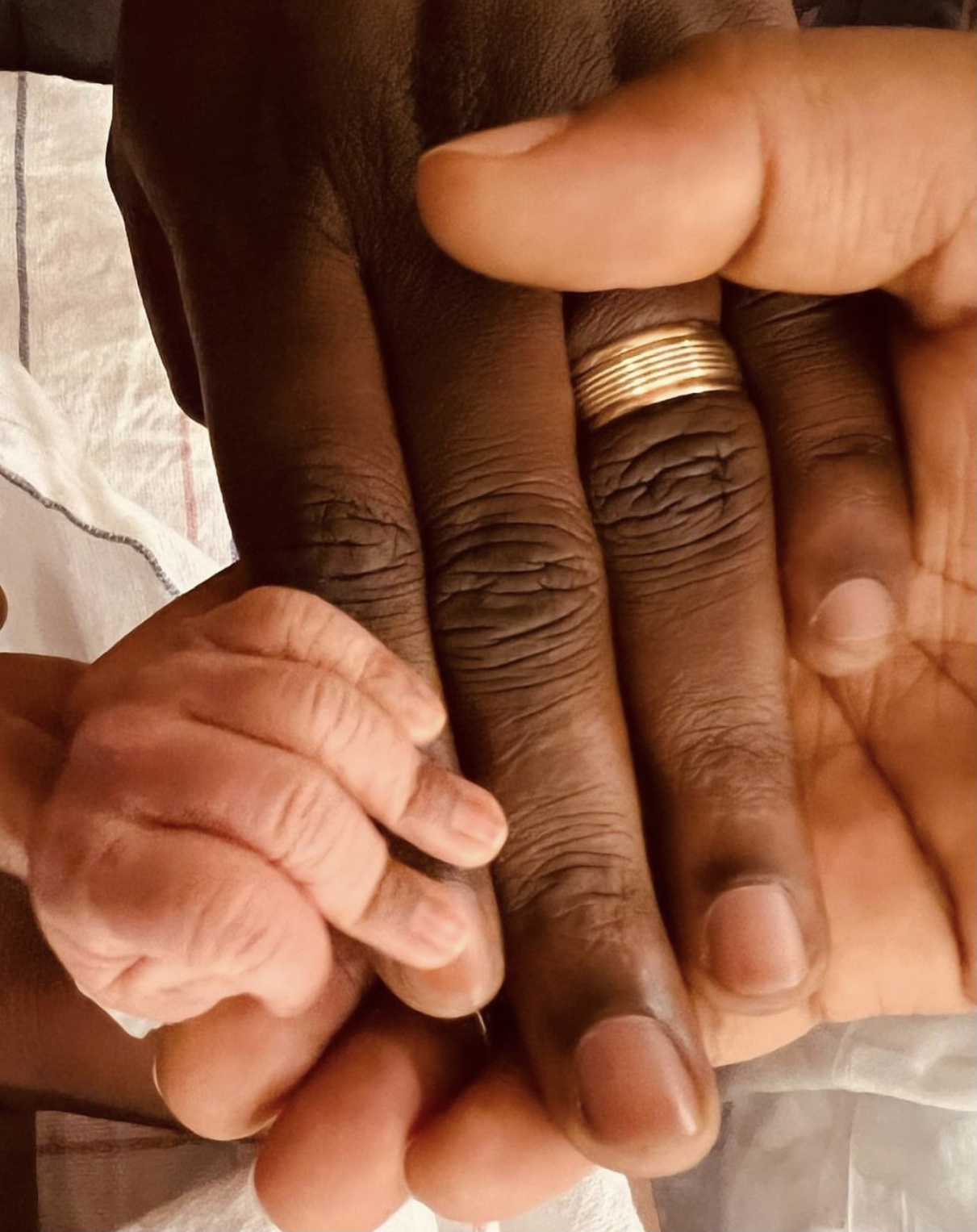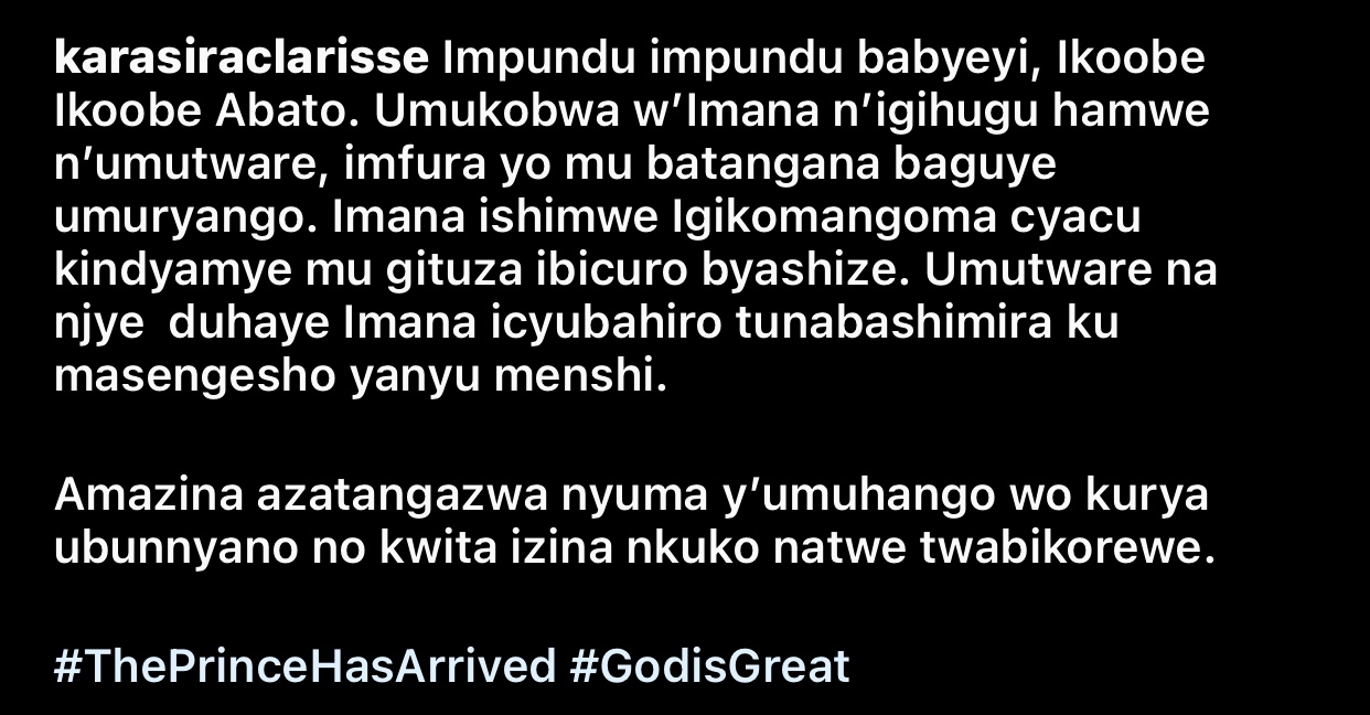 Abinyujije ku rukuta rwe rwa instagram, Clarisse Karasira yashyize ahagaragara ifoto igaragaza ikiganza cye, icya Sylvain n’icy’umwana wabo w’imfura maze ayiherekesha amagambo akurikira: