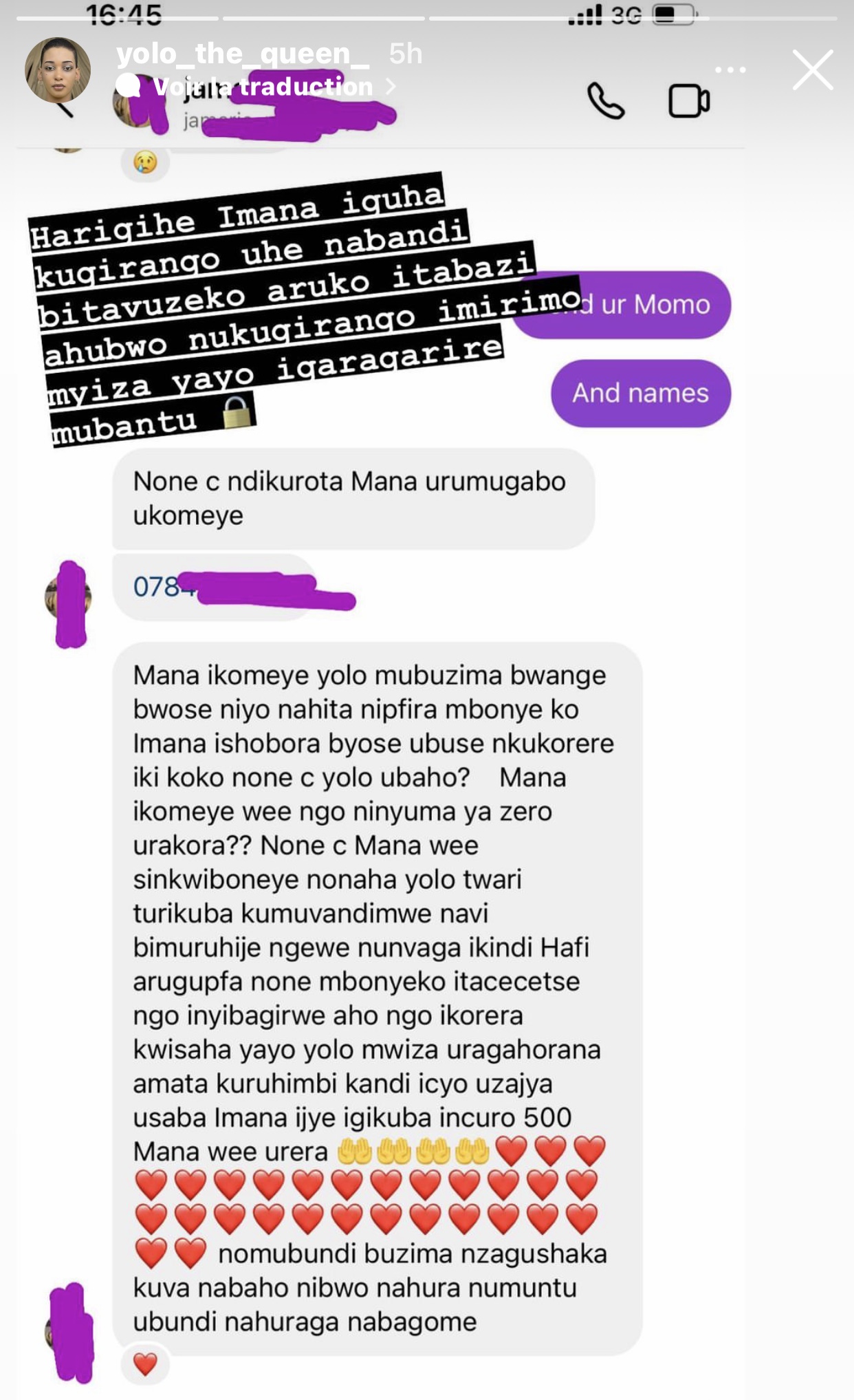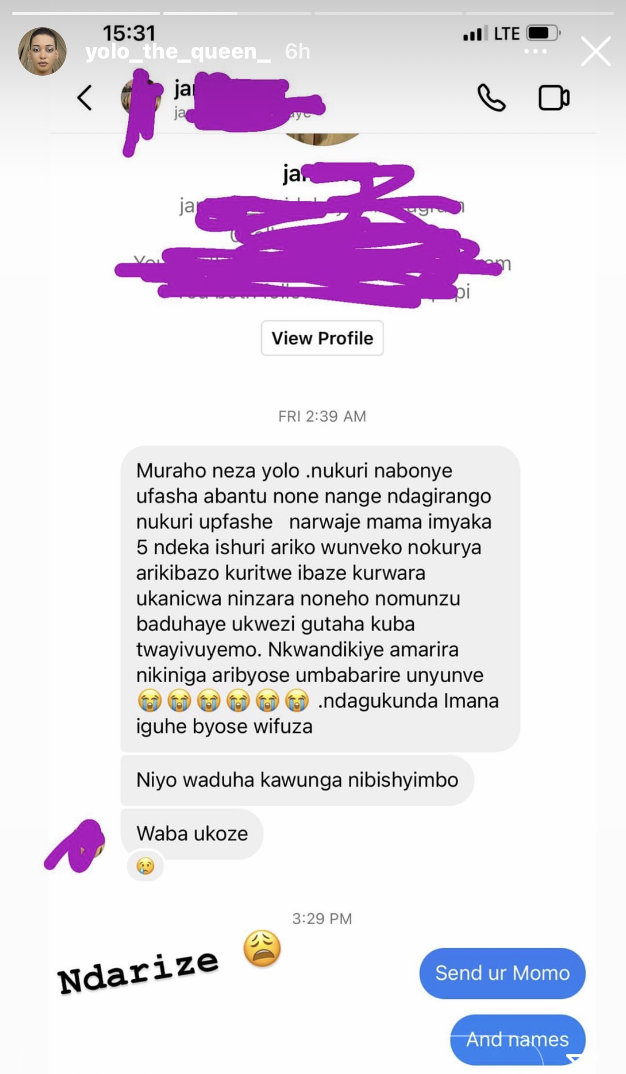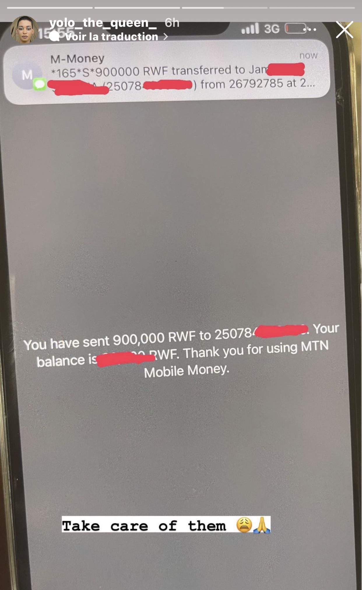 Uyu mufana yari yarandikiye Yolo The Queen abinyujije mu gasanduku k’ubutumwq bugufi (DM) ka instagram maze nyuma yuko Yolo The Queen asomye ubutumwa bwe amugirirq impuhwe amwoherereza amafaranga ibihumbi magana acyenda y’U Rwanda (900,000Frw).