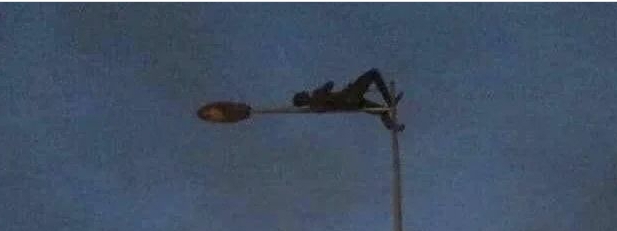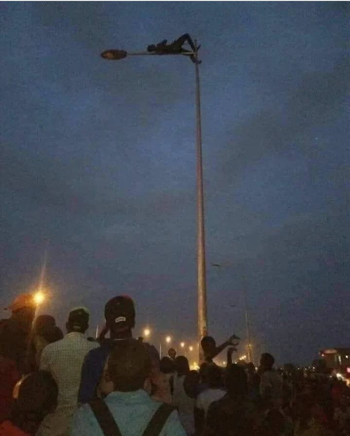 Ifoto yasakaye ku mbuga nkoranyambaga yerekana umugabo wari wibye nuko abantu bashaka ku mu fata akabihisha. Uyu mugabo yabonye agiye gufatwa yigira inama yo kurira itara ryo ku muhanda ku buryo nta muntu wabasha kumugeraho.