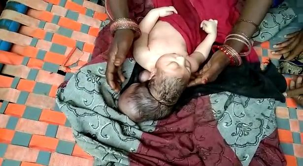 Amafoto n’amashusho yagaragaye yerekana umugore umwe ari gutunganya umwana neza ngo aryame iyo mitwe yose uko ari itatu ntanumwe umubangamiye. Uretse umutwe usanzwe umuntu avukana, uwo mwana afite indi mitwe ibiri mito itereye inyuma kuri umwo mutwe, ndetse yose iriho n’imisatsi. Iyo mitwe ibiri kandi igaragara nkaho iremereye nkuko byagiye bigaragara, ariko igihari nuko umwana nta buribwe na bumwe afite kuko atigeze arira na gato.