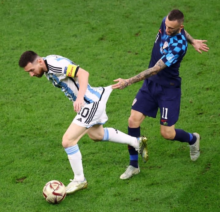 Mu mukino waraye ubaye kuri iyu wa Kabiri tariki 13 Ukuboza 2022 mu gikombe cy’isi muri 1/2 wahuje Argentine na Croatia, bikaza kurangira Messi afashije Argentina kunyagira Croatia ibitego 3-0, Messi yandagaje rutahizamu wa Croatia bituma yenda kumukuramo ikabutura.
