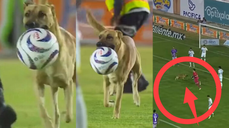 Ijoro ryahise muri Mexico habereye agashya ubwo imbwa yinjiraga mu kibuga igatwara ballo ubundi igacenga abari bari mu kibuga.