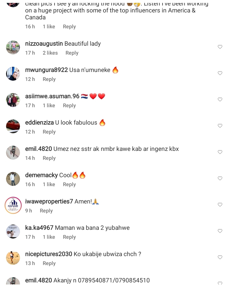 Uyu mukobwa ukurikirwa n’abantu basaga ibihumbi 110 kuri instagram yatunguye abafana be nyuma y’amafoto yashyize hanze yambaye ikanzu ngufi cyane.Bamwe mu bafana be bamwereka ko bamukunda ndetse ,abandi bamuvugaho ibitekerezo bitandukanye .