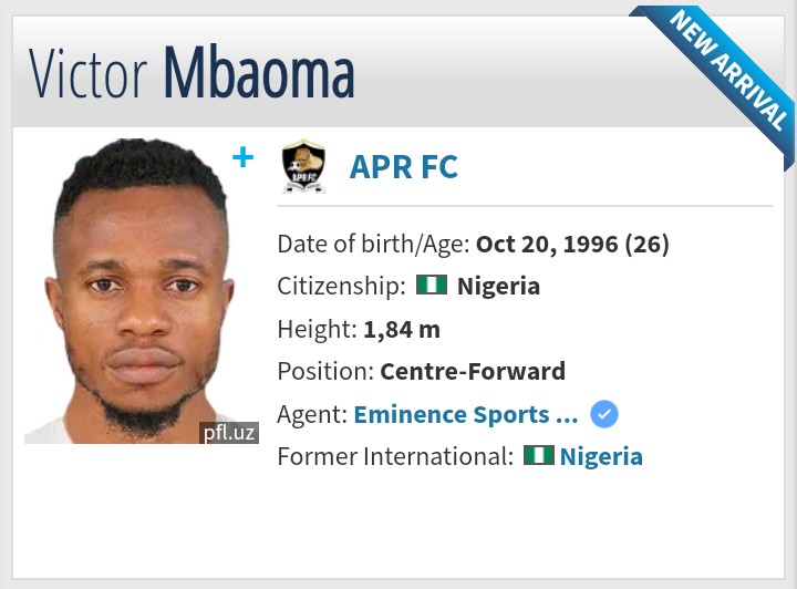 Uyu musore akomoka mu gihugu cya Nigeria ndetse akaba asanzwe ahamagarwa mu ikipe y’igihugu. Siyo gusa kuko yanyuze mu makipe atandukanye harimo Enyimba F.C., Qizilqum Zarafshon na MC Algiers.