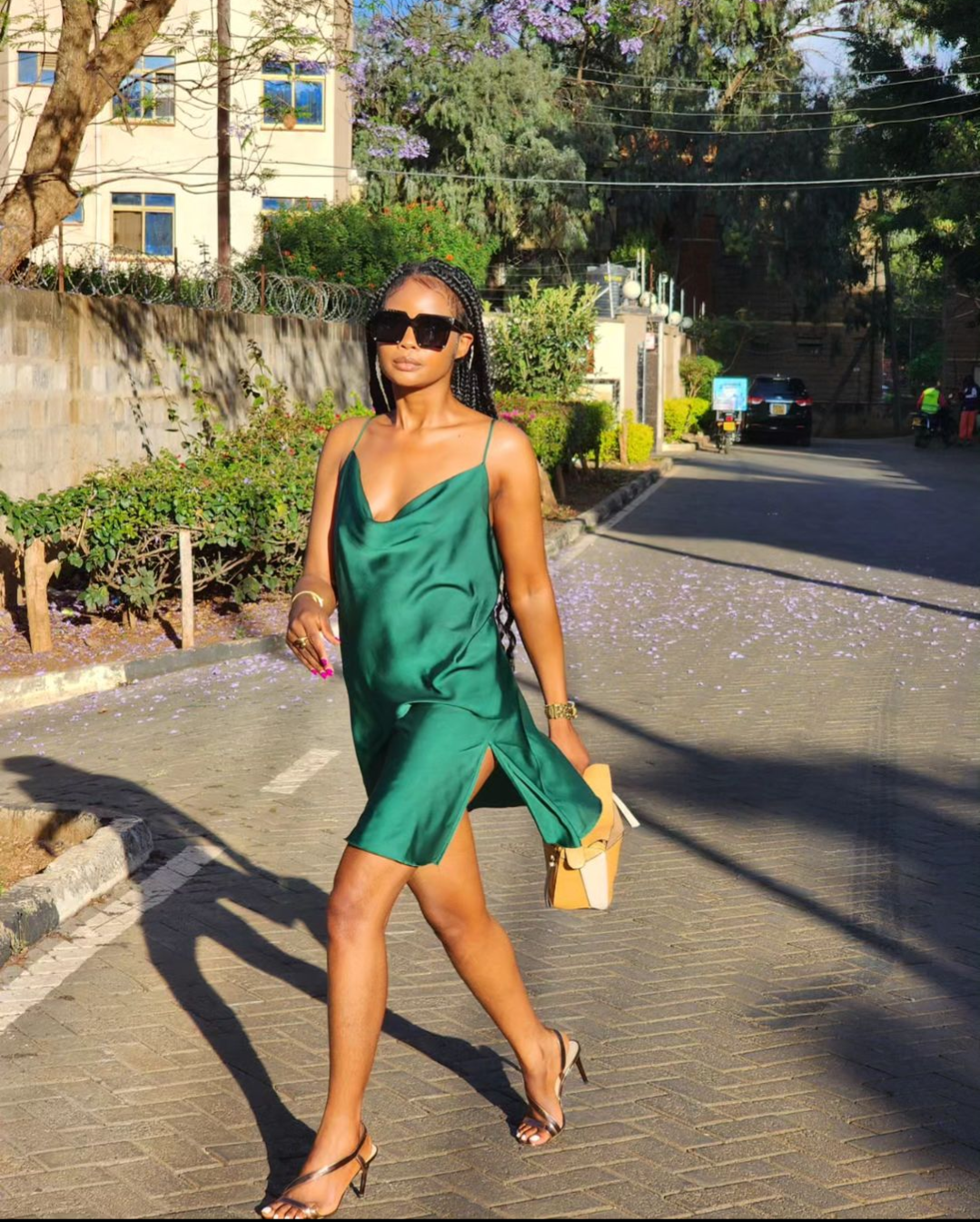 Abinyujije kurukuta rwe rwa Instagram yashyizeho amafoto yambaye agakanzu koroshye cyane gahuhwa n’umuyaga kuburyo kazamukaga ukabona ko ibyo kukazamura atabyitayeho.