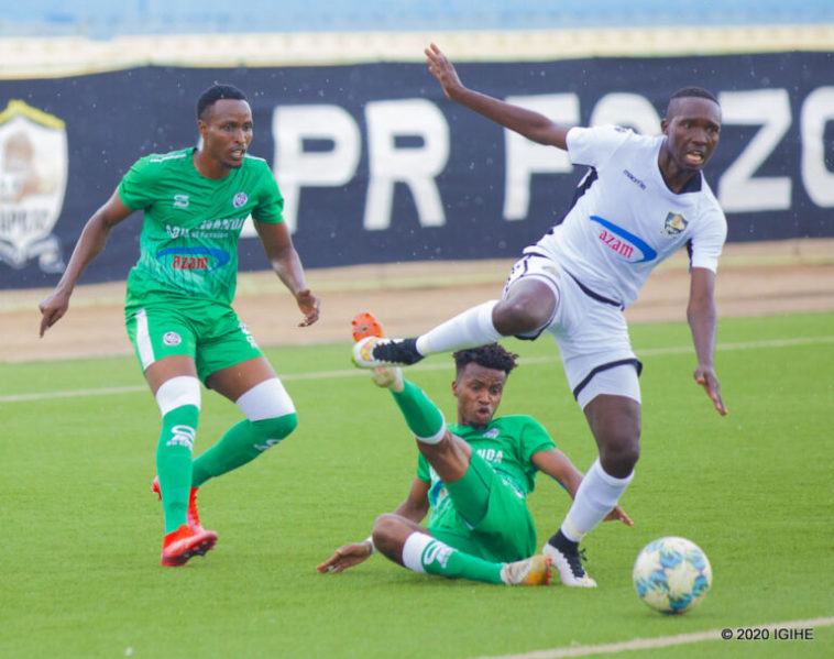 Myugariro wa Apr Fc Ombolenga Fitina yaje gukorera ikosa Bigirimana Abeddy ahita ahabwa ikarita y’umuhondo byanashobokaga ko yari guhabwa umutuku.