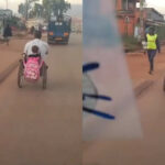 Amashusho y’umugabo ugendera mu kagare ajyanye umwana we ku ishuri akomeje gukora ku mitima ya benshi