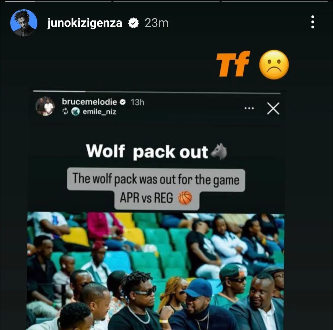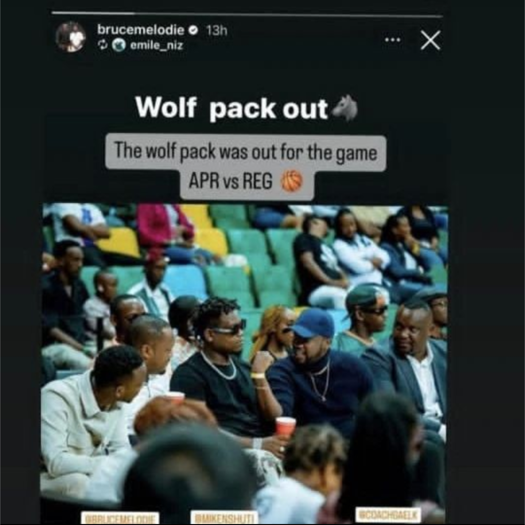 Bruce Melodie yari yashyize ifoto kuri Instagram n’ikipe ye maze yandikaho ko itsinda ry’ibirura ryitabiriye umukino wa Basketball wahuje APR na REG.