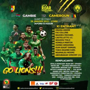 Iminota 90 yagenwe n’amategeko yaje kurangira ikipe y’igihugu ya Cameroon ikiri imbere n’ibitego bibiri ku busa bwa Gambia.