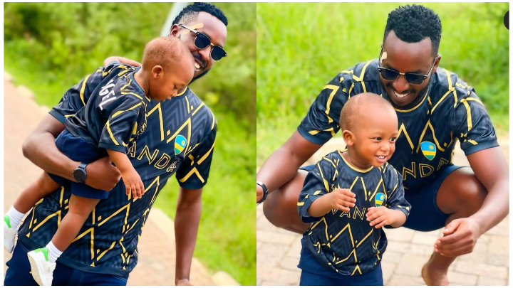 Umukinnyi Kimenyi Yves yashyize hanze amafoto ari kumwe n’umwana we w’imfura maze yishimirwa n’abakoresha imbuga nkoranyambaga.