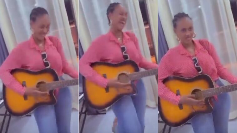 Ni amashusho yasangije abamukurikira kuri Instagram, aho yagaragaye ari gukirigita imirya ya gitari gusa bisa nkaho ari kubyiga.