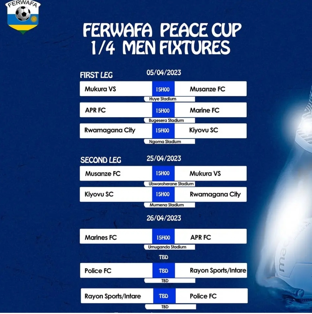Imikino ya 1/4 ku munsi w’ejo izatangira mu gikombe cy’Amahoro menya uko ama kipe azacakirana
