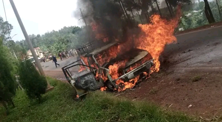Ubwo iyi modoka yageraga muri aka karere yafashwe n’inkongi y’umuriro, ariko abaturage batabarira hafi bafasha abarimo bavamo amahoro ndetse n’ibyabo ntihagira icyangirika.