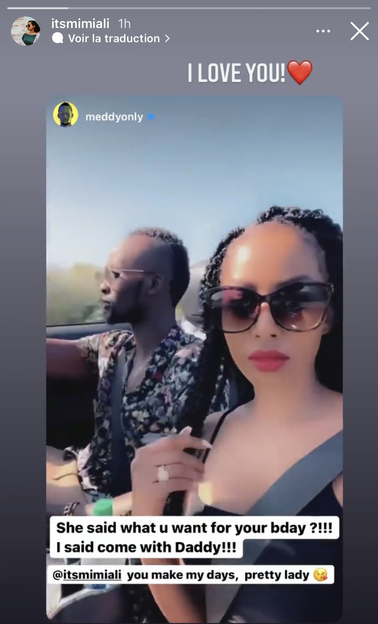 Meddy abinyujije kuri story ya instagram ye yagize ati « She said what u want for your bday?!!! I said come with Daddy!!! @itsmimiali, you make my days, pretty lady😘 ».