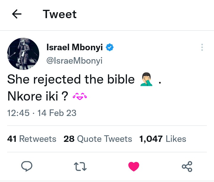 Mu buryo bw’urwenya umuhanzi Israel Mbonyi yanditse agira ati “yanze Bibiliya nkore iki .”