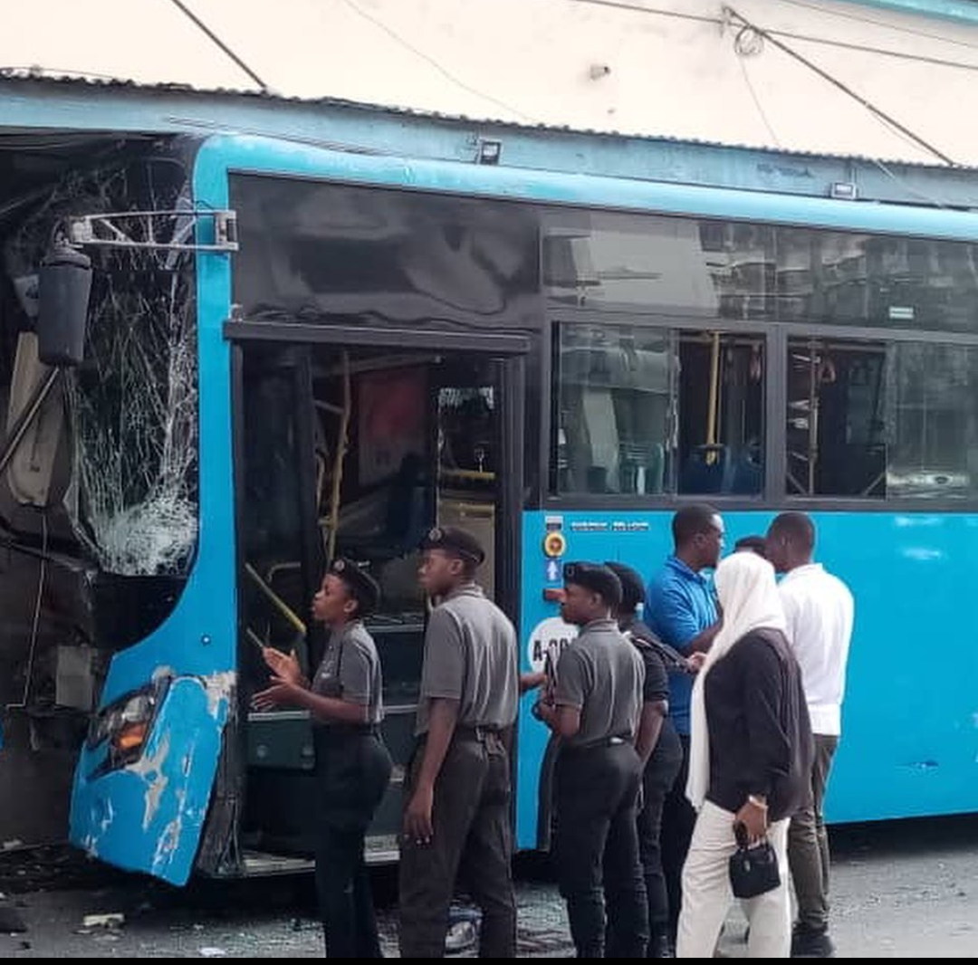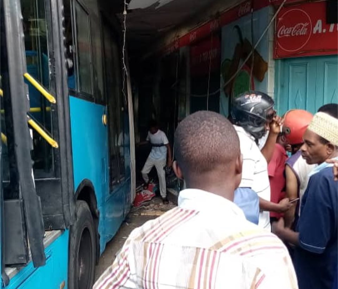 Abantu umubare wabo utaramenyekana byavuzwe ko bakomerekeye mu mpanuka yabaye muri iki gitondo irimo bisi itwara abagenzi  yavuye mu muhanda ikubita imwe mu nyubako ziri mu nkengero, hafi y’isangano ry’imihanda ya Jamhuri na Morogoro.