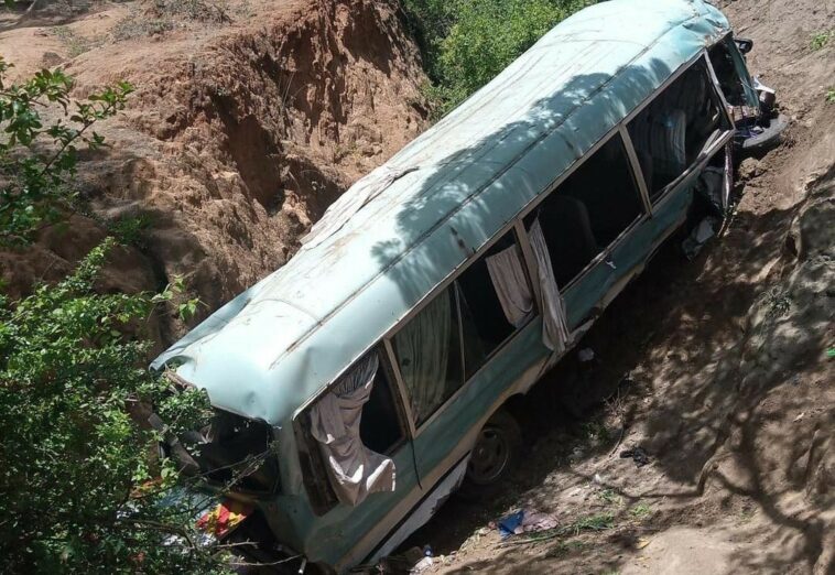 Impanuka iteye ubwoba y’imodoka itwara abagenzi yahanutse mu buryo bukomeye ku musozi igwa mu mukingo irimo abantu benshi