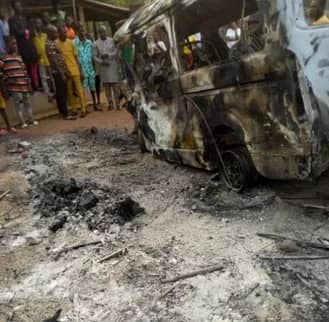 Abanyeshuri b’ikigo cya Modonna University bari bavuye mu miryango yabo imodoka barimo ifatwa n’inkongi y’umuriro irashya irakongoka.