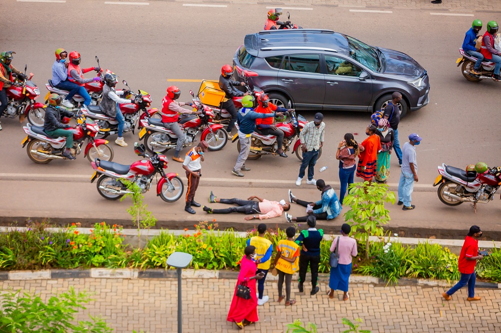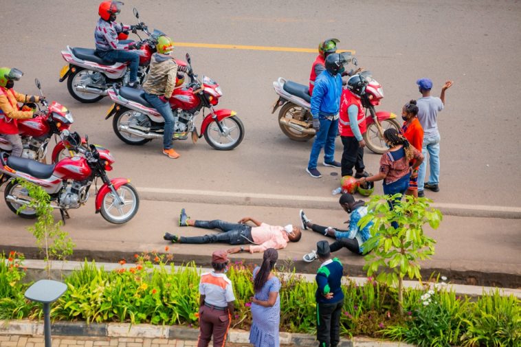 I Kigali rwagati ruhande rw’inyubako ya MIC iri mu karere ka Nyarugenge hagonganiye Moto ebyiri, babiri mu bari baziriho barakomereka.