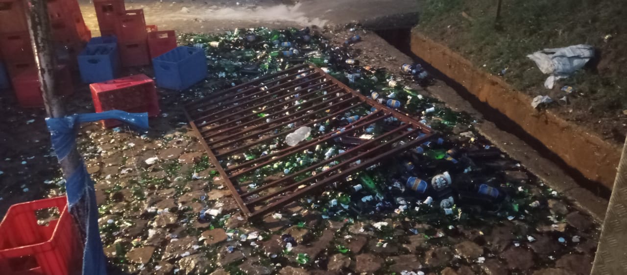 Nyuma y’uko iguye, zimwe mu nzoga yari yikoreye yamenetse maze zitwarwa n’umuvu w’imvura yari iri kugwa ari nyinshi.