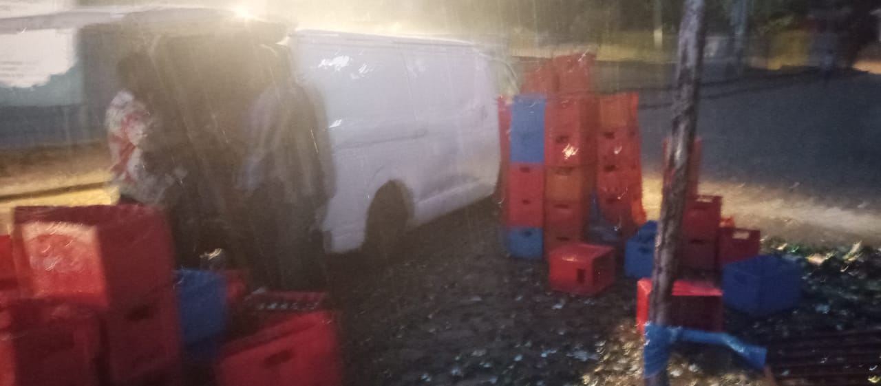 imodoka ipakiye Inzoga z’uruganda Bralirwa yakoze impanuka, kubera imvura nyinshi yari iri kugwa muri ayo masaha.