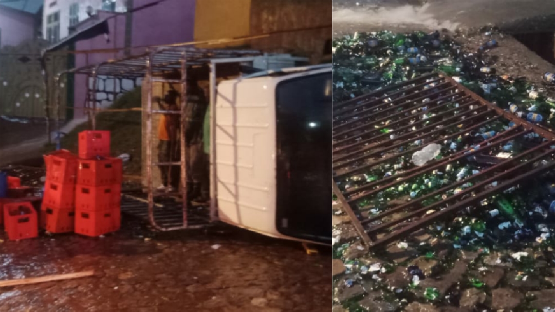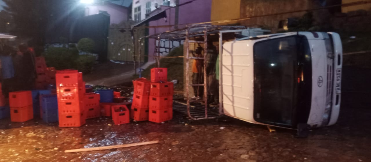 Imvura yazinywereye: Imodoka itwaye inzoga ikoze impanuka umuvu urazitwarira (AMAFOTO)