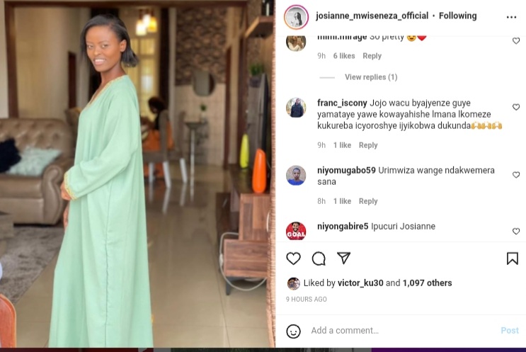 Miss Mwiseneza Josiane ukundwa n’abatari bake cyane cyane ku mbuga nkoranyambaga by’umwihariko instagram yatunguranye ubwo yari yambaye ikanzu ndende cyane yatumye abazwa impamvu yamuteye guhisha amataye ye.