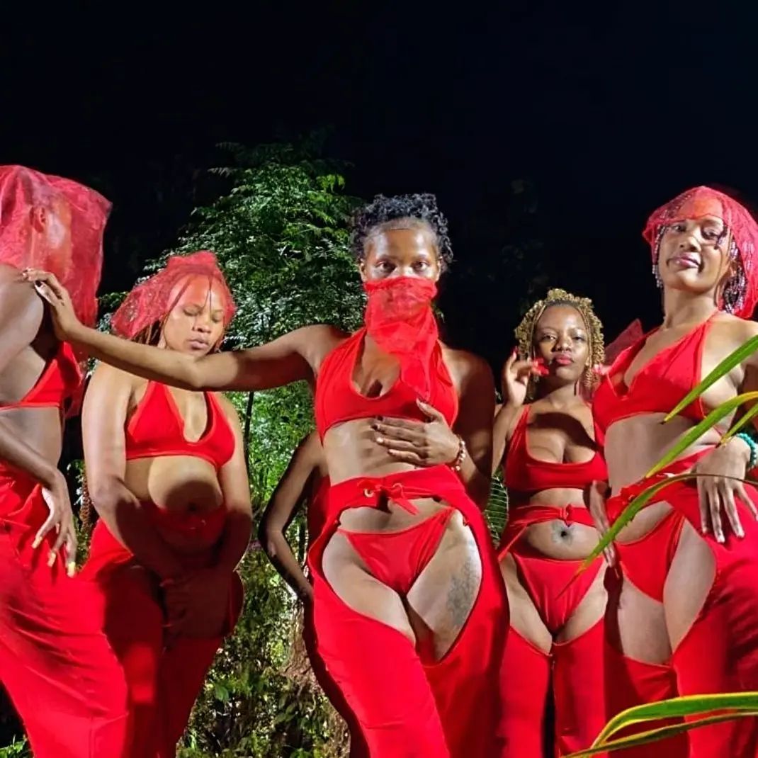 Abakobwa bagaragaye mu mashusho y’indirombo nshya y’umuhanzi Afrique, bari bambaye imyambaro itarimenyerewe.