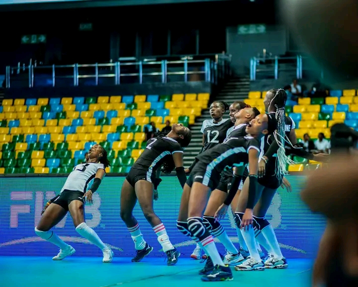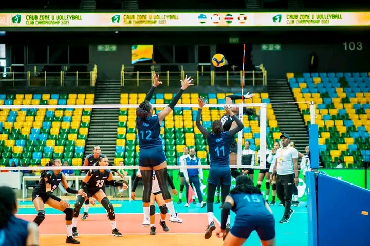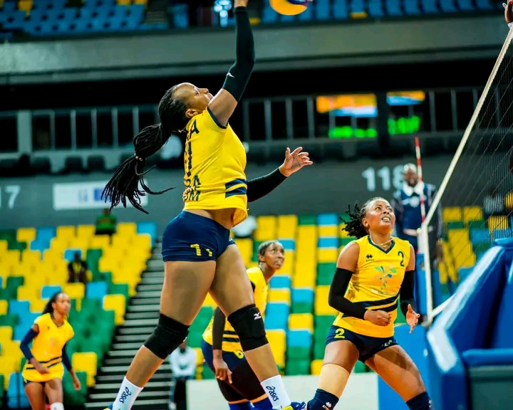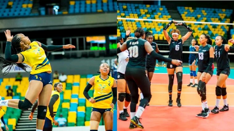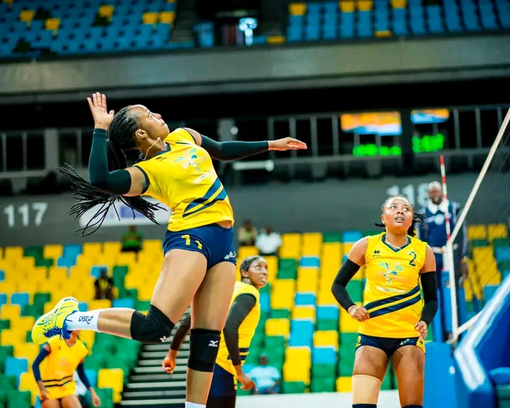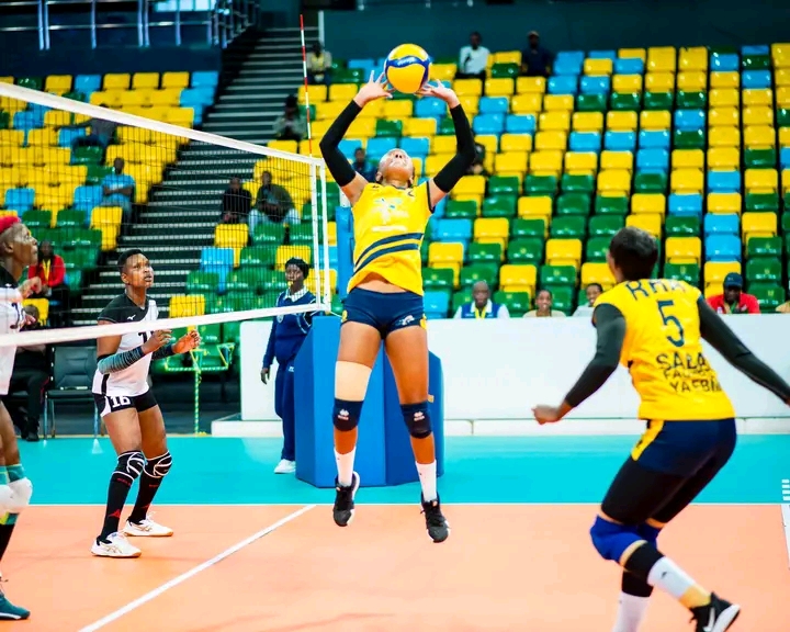 Muri BK Arena hari kubera irushanwa ry’akarere ka Gatanu mu mukino w’amaboko wa Volleyball aho abakobwa bari utera ibiro bivuze ubuhuha.