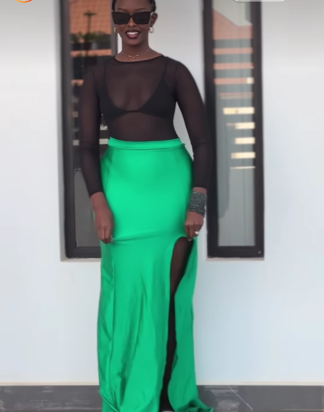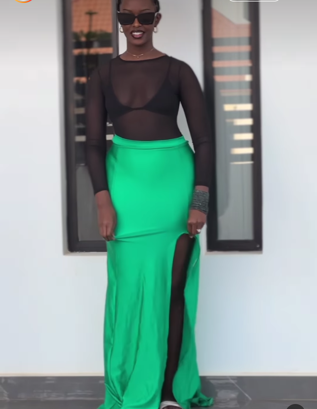 Imyenda isigaye igenda izamuka buri kanya! Uwicyeza Pamela kubera imiterere y’ikibero cye byatumaga umwenda w’imbere uzamuka nawe akarwana no kuwumanura -AMAFOTO