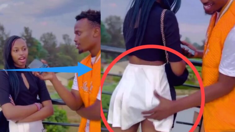 Inkumi z’ikigali zikomeje kwiyandarika: Umukobwa wari wambaye impenure yateze maze umusore bari kumwe aramukandakanda nk’uwamukoye [Video]