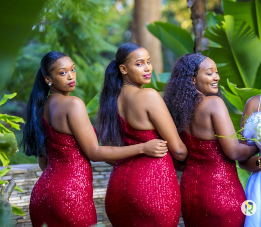 Dore amwe mu mafoto y’abakobwa bambariye Vanillah mu bukwe bwe na Yverry: